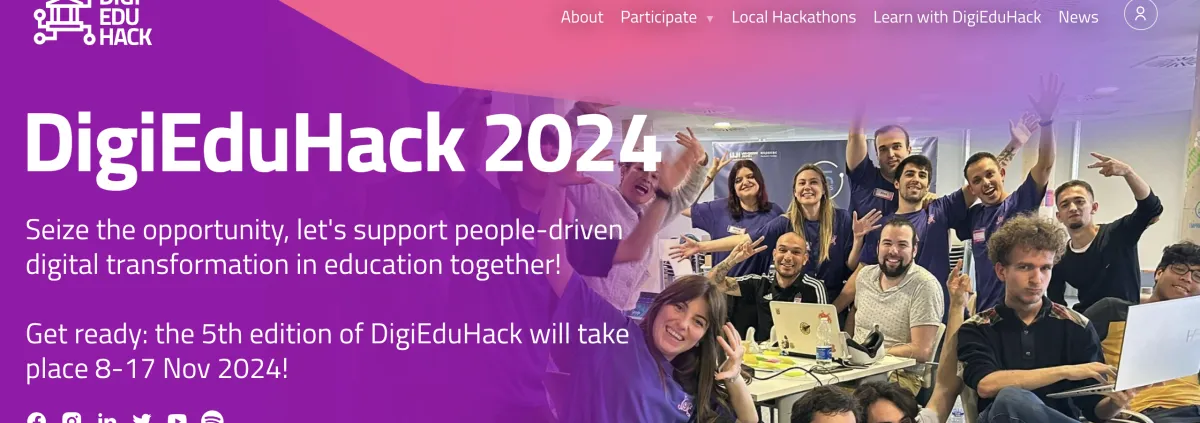 We're thrilled to announce that the 5th edition of DigiEduHack is taking place from 8th to 17th November 2024! This initiative of the Digital Education Action Plan 2021-2027, featuring a series of 24-hour grassroots hackathons, will bring together innovators, educators, and tech enthusiasts from around the world to solve challenges in digital education.