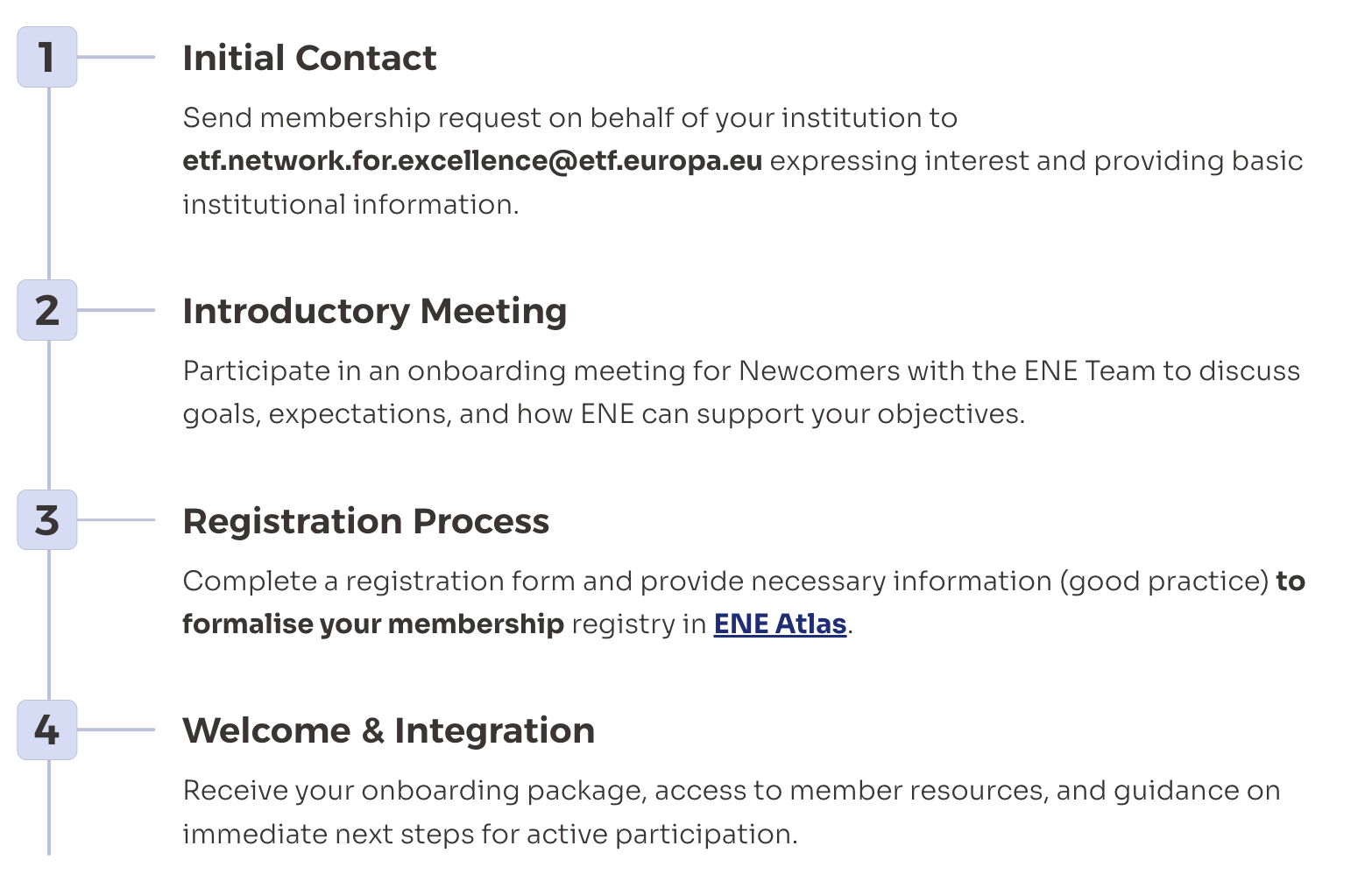 Ready to join? Contact us at etf.network.for.excellence@etf.europa.eu to begin your ENE membership journey and connect with over 330 VET excellence practitioners worldwide.