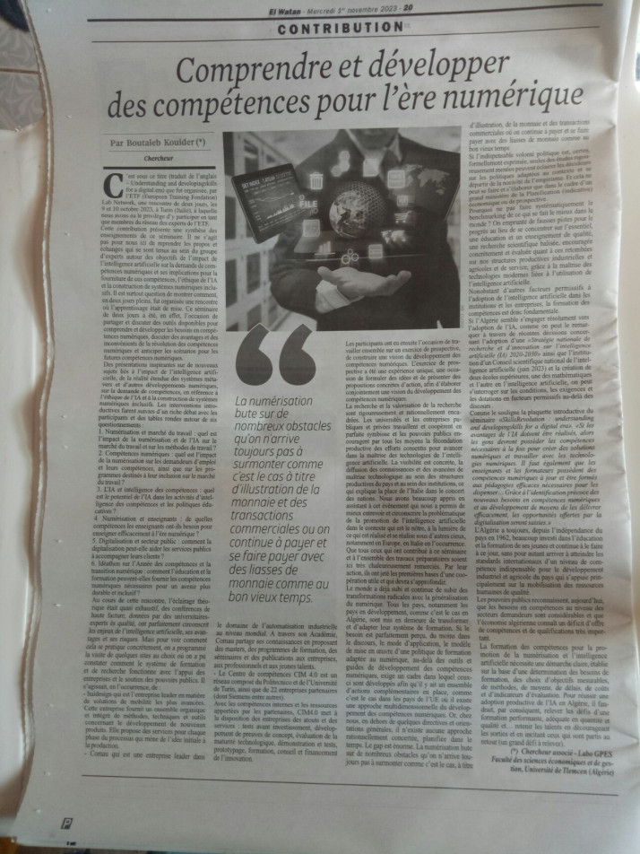 Paper published in french algerian newspaper on " the ETF Event- Torino 2023 " by Boutaleb kouidrr