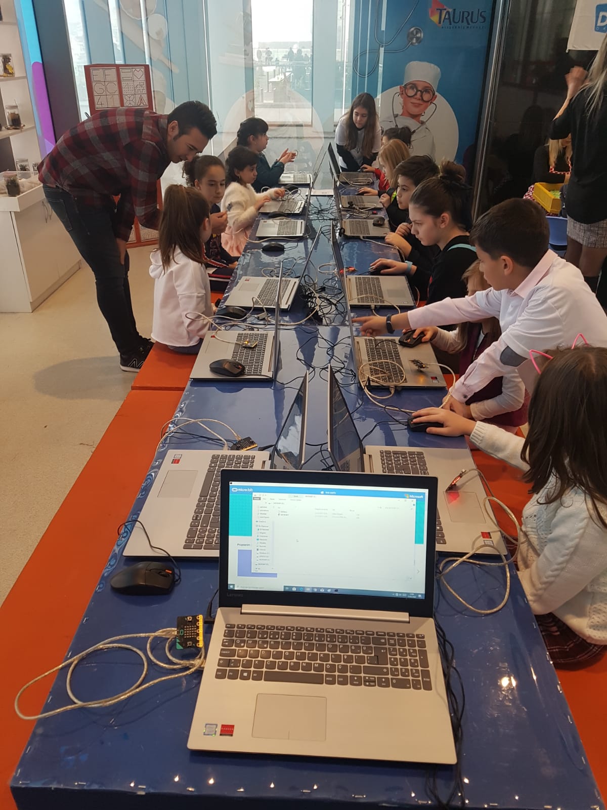 The BBC micro:bit is a handheld, programmable micro-computer that can be used for all sorts of cool creations, from robots to musical instruments – the possibilities are endless. Moreover, BBC micro:bit encourages kids to learn basic coding and programming skills to prepare them for today's tech-savvy world. The aim ot the workshop is teach basic skills about coding with BBC micro:bit. The workshop consist of 5 different session (40 minutes per). The trainers will give information about micro:bir and coding. The students will learn basic tools such as using buttons, LEDs. We will use Microsoft MakeCode to code micro:bits. After the workshops, we expect to raise coding awareness for both students and parents.