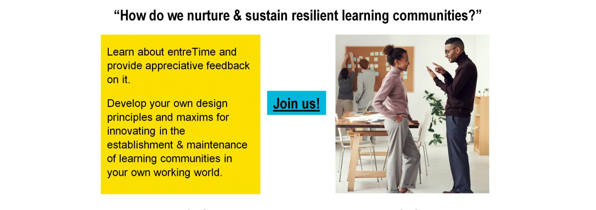 To share the entreTime experience on how to embrace entrepreneurship into teaching and reflect on design principles and maxims for innovating in the establishment & maintenance of learning resilient communities, entreTime has organised this first virtual event in collaboration with EntreComp Synergies project.