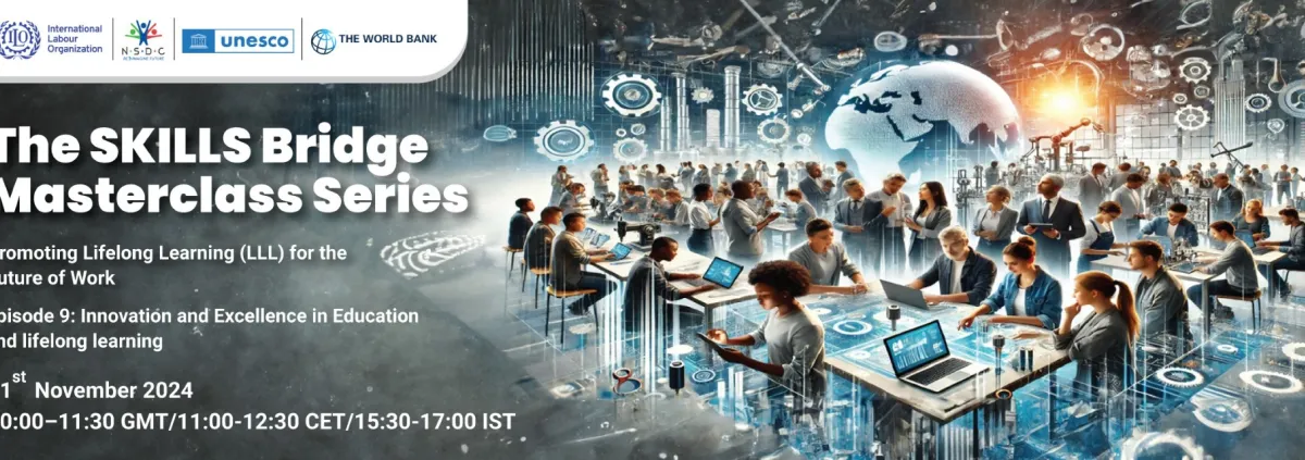 We are pleased to share with you the 9th episode of the “SKILLS Bridge” Masterclass series, co-organized by the ILO, the World Bank, UNESCO, and NSDC. This session will focus on Innovation and Excellence in Education and Lifelong Learning.