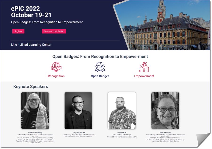 If you are interested in Open Badges and Microcredentials, if you would like to know what "Open Recognition" is about, join us at ePIC 2022-Lille (France) October 19-21. This year's conference theme is "Open Badges: from Recognition to Empowerment"