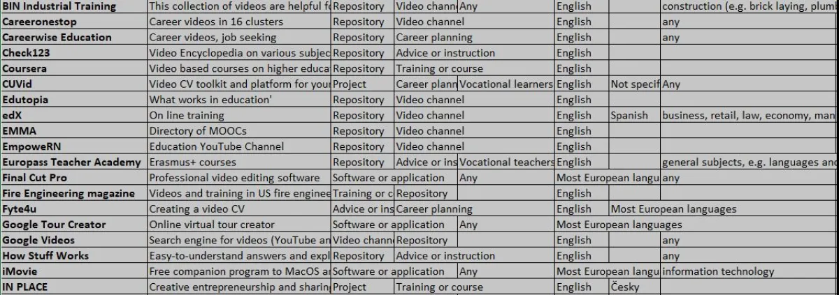 Tags Continuing professional development Video pedagogy Practice Areas Innovative teaching and learning On-line Directory of resources and good practice Helping practitioners to explore how video is being used in VET teacher training and teaching. This includes practice, exemplars, training, guidance and resources. Files Directory of Resources for Video Pedagogy 64 KB